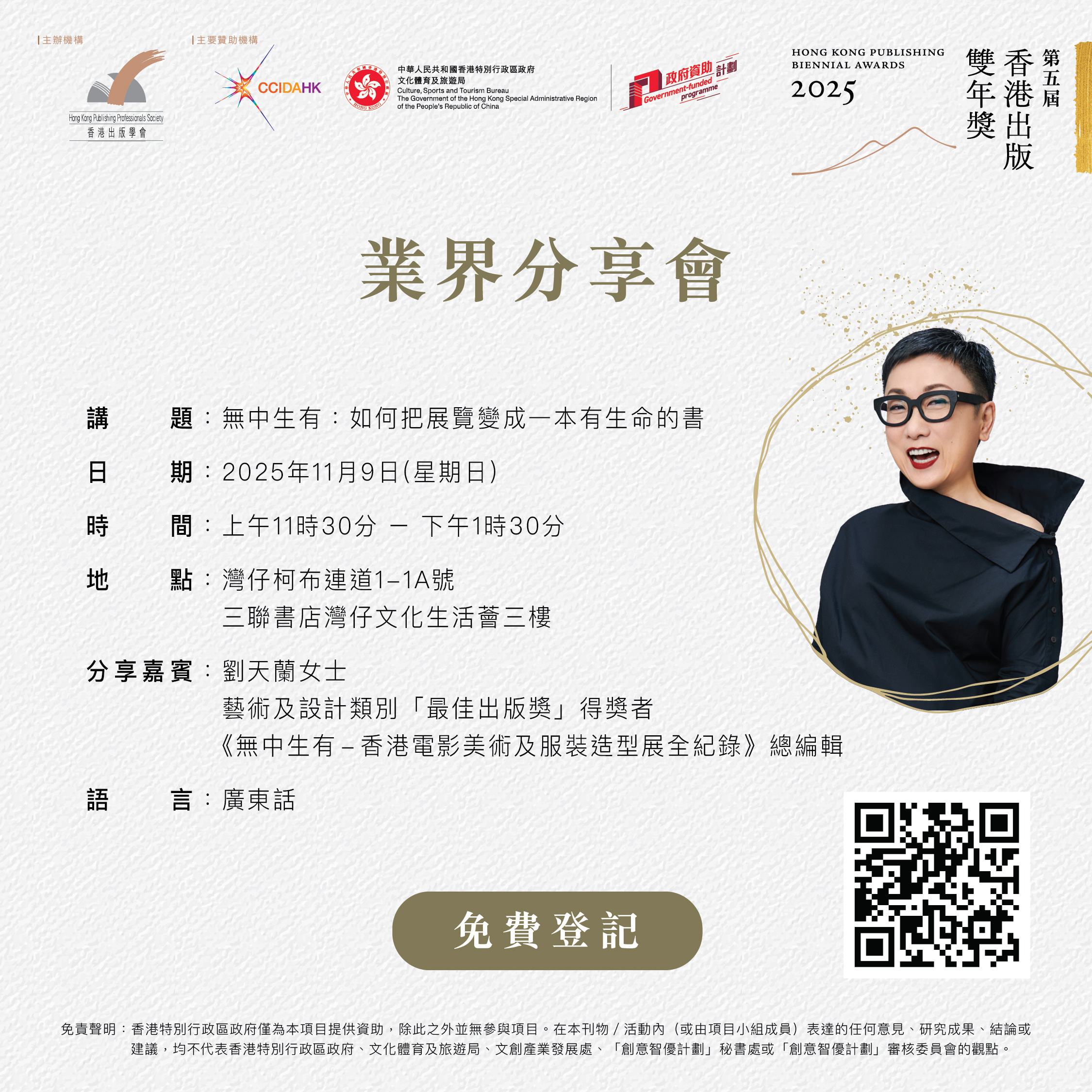 第五屆「香港出版雙年獎」首場業界分享會即將舉行!✨
